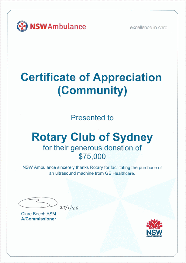 Sydney Rotary has adopted this as a project for the Club in the 2025-26 Presidential year.