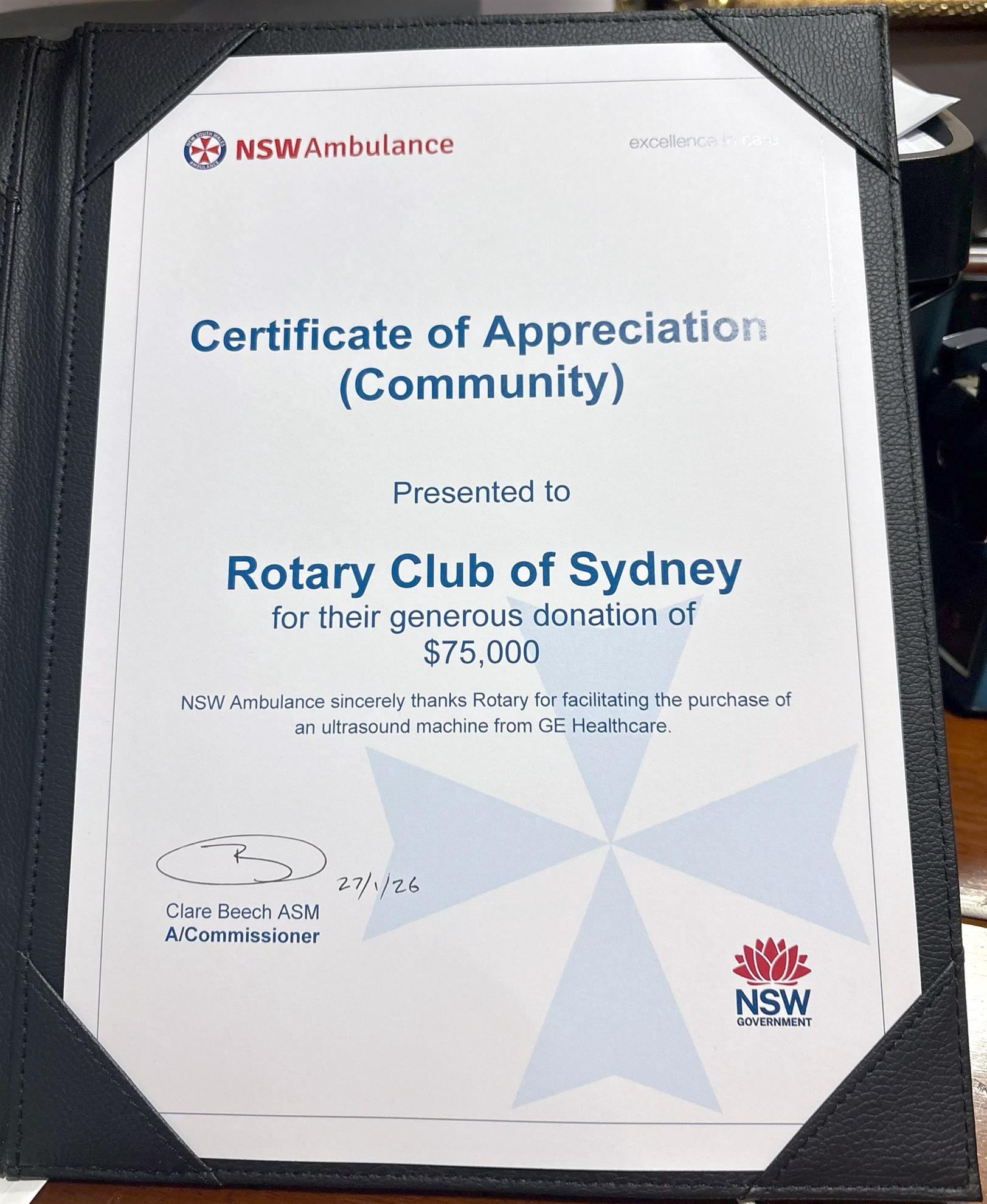 Sydney Rotary has funded NSW Ambulance with $75,000 to significantly improve survival rates from patients suffering cardiac arrest.